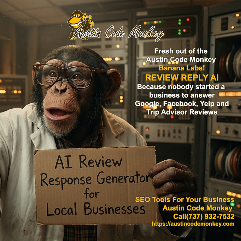 Austin Code Monkey’s new SEO Tool Review Reply AI provides quick, thoughtful replies to both positive and negative review signals. Delivers professionalism, builds consumer trust, and directly boosts local rankings.