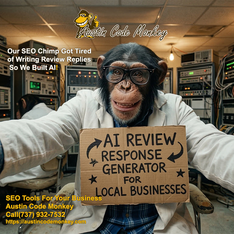 Austin Code Monkey’s AI Review Response Generator creates professional responses instantly, so you never miss a review again. Start responding faster and improving your local rankings today. Try it out for your business below.